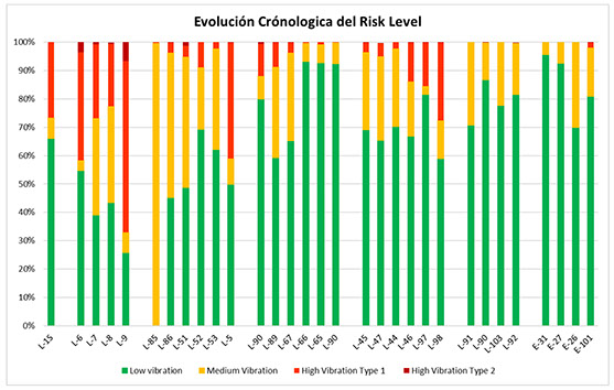 Figura 16. Evolución Cronológica del Nivel de Riesgo relevado por el monitor de vibraciones.