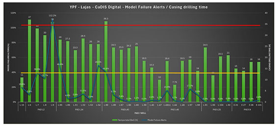 Figura 17: Alertas de Falla detectadas por el sistema x PAD / Pozo.