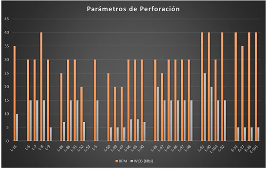Respecto a los parámetros de perforación, desde el inicio de las asistencias se observó que las RPM y el WOB son los que tienen más incidencia en los resultados asociados a las vibraciones, por ello siempre nuestras recomendaciones estuvieron asociadas a controlar estas variables.