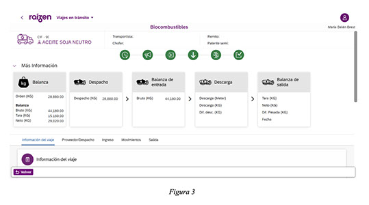 Una vez que el camión se presenta en la refinería, se inicia el proceso de recepción mediante su pesaje en una balanza calibrada, lo que permite registrar el peso bruto de ingreso. Posteriormente, el camión accede a las instalaciones y descarga el contenido en el tanque de materia prima. Finalizada la descarga, el camión vuelve a pasar por la misma balanza para registrar el peso de salida. La diferencia entre ambos registros constituye el volumen neto descargado, que se utiliza como dato calibrado y trazable del ingreso de materia prima renovable a la refinería.