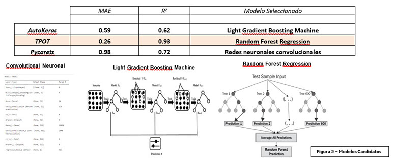La Figura 5 muestra el funcionamiento de los distintos modelos seleccionados por cada biblioteca como mejor candidato.
