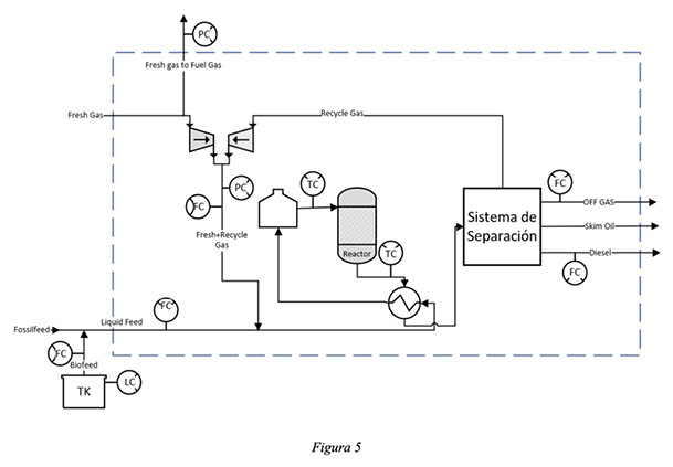 La unidad definida para coprocesar en la refinería fue la hidrotratadora de Diesel. Esta unidad se encuentra operando desde 1997. Se diseñó originalmente para eliminar el azufre de una mezcla de corrientes de diesel livianos, pesados y craqueados de origen fósil, bajo una alta presión parcial de hidrógeno. El proceso consta de una sección de purificación de gas fresco, una sección de reacción y una sección de procesamiento final.